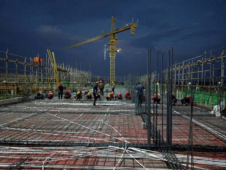 公司領(lǐng)導(dǎo)多次親赴現(xiàn)場(chǎng)協(xié)調(diào)資源配置,要求集中優(yōu)勢(shì)力量,全力支持六安一中搶工,物資部門(mén)、集采部門(mén)直接對(duì)接馬鋼生產(chǎn)廠家,成立協(xié)調(diào)小組,確保鋼材充足供應(yīng);在設(shè)備租賃公司支持下,項(xiàng)目部?jī)H用7天時(shí)間完成15臺(tái)塔吊等大型設(shè)備安裝;公司還從優(yōu)選班組庫(kù)中篩選出鋼筋班組3個(gè)、木工班組3個(gè)、瓦工班組4個(gè)、外架班組4個(gè),振皖勞務(wù)公司從周邊地區(qū)協(xié)調(diào)大量技術(shù)工人專門(mén)組建搶工突擊隊(duì)。