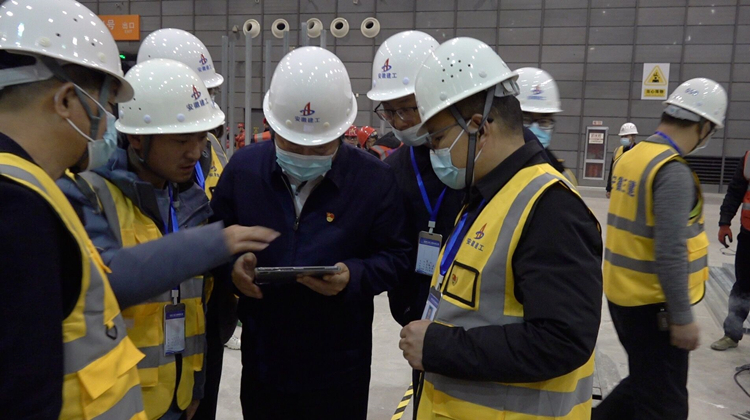 為了爭取時間,三建提前做好了人員、物資的準(zhǔn)備工作,圖紙還未下達(dá),安徽三建已經(jīng)調(diào)集近200多名本地工人,落實(shí)核酸檢測和查驗(yàn)雙碼,為進(jìn)場施工做好準(zhǔn)備工作。拿到圖紙后4個小時,項(xiàng)目部就制定了交叉作業(yè)的科學(xué)施工方案,同時下達(dá)了精確到小時的施工進(jìn)度計劃。裝飾、安裝、土建立即投入施工。制定解決方案。辦法總比困難多。在施工過程中發(fā)現(xiàn)任何問題,項(xiàng)目部立即現(xiàn)場解決?,F(xiàn)場停水48小時,項(xiàng)目就調(diào)用消防水車、購買飲用水,千方百計保證項(xiàng)目不停工。三建參戰(zhàn)的裝飾、安裝、土建團(tuán)隊緊密配合,形成合力,確保了各項(xiàng)工作高速推進(jìn)。