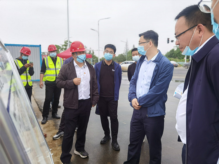 楊丙紅先后來到肥西縣產(chǎn)城融合示范區(qū)開發(fā)項目子項目三公山路市政工程和肥西群光健康驛站(隔離點)應(yīng)急工程的施工現(xiàn)場,結(jié)合項目展板及現(xiàn)場實地聽取項目建設(shè)情況和后續(xù)進度計劃的匯報,察看了建設(shè)工程的物資設(shè)施,充分肯定安徽三建在疫情防控期間,抓好要素保障、統(tǒng)籌推進項目建設(shè)所取得的成果,并詢問當前建設(shè)面臨的困難與問題。