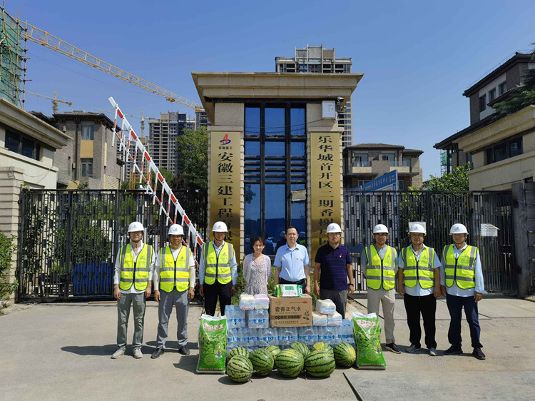 7月12日和7月13日上午,二公司副經(jīng)理侯強、李國先后赴合肥市第一中學(xué)校園品質(zhì)提升工程、新建藝術(shù)禮堂項目施工總承包工程(含安裝公司、裝飾公司職工)、合巢產(chǎn)業(yè)新城郭塘新村、映湖公租房項目施工二標(biāo)段開展夏日“送清涼”活動,為70多名管理人員、400多名一線工人發(fā)放防暑降溫物品。