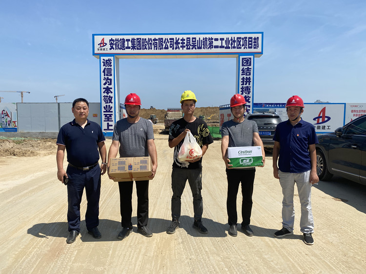 自7月13日開始,基礎(chǔ)公司領(lǐng)導(dǎo)班子成員先后前往長豐縣吳山鎮(zhèn)第二社區(qū)等6個項目開展送清涼活動,為在高溫下作業(yè)的一線工作人員送去礦泉水、綠豆、白糖、藿香正氣水等防暑降溫用品,給他們送去烈日下的清涼和關(guān)懷。 基礎(chǔ)公司經(jīng)理、支部書記袁學(xué)明代表基礎(chǔ)公司,對奮戰(zhàn)在項目一線正在進行工程基礎(chǔ)施工的項目職工進行了慰問,同時提醒大家要靈活安排工作,注重崗位安全,在工作的同時要注意防暑降溫,增強自我安全防范意識,確保身體健康。