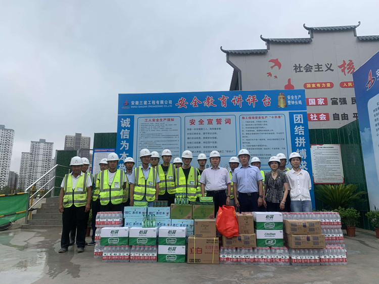 7月以來,伏天酷暑,高溫“炙烤”,安徽省持續(xù)高溫,多地氣溫接近40℃,給一線建設者們帶來嚴峻“烤”驗。為切實做好夏季安全生產(chǎn)和防暑降溫工作,落實“我為群眾辦實事”工作部署,安徽三建適時開展“送清涼”活動,為奮戰(zhàn)在現(xiàn)場一線的項目管理者們送去關心愛護,保障一線員工的身體健康,助力企業(yè)安全生產(chǎn)。