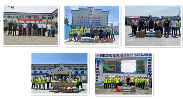 公司黨委書記、董事長何洪春,黨委副書記、總經(jīng)理徐少華等班子成員分別帶隊,領導班子成員先后前往濱湖科學城項目、天長恒大湖山半島項目、安徽省公共衛(wèi)生臨床中心項目、少荃體育中心項目、葉集明發(fā)城市廣場項目、源長花園項目、合肥一中東校區(qū)項目、嚴店鄉(xiāng)引江濟淮二期項目等項目一線、工廠車間,親切慰問堅守崗位、奮戰(zhàn)在高溫一線的干部職工,為他們送上防暑降溫物品,感謝他們?yōu)楣景l(fā)展做出的貢獻,同時叮囑他們在高溫天氣要合理安排作息時間,注意勞逸結合,確保施工安全。