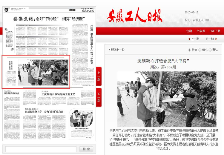 安徽工人日?qǐng)?bào)——黨旗凝心打造合肥“大書(shū)房” 發(fā)布時(shí)間:2020-05-18 來(lái)源:安徽工人日?qǐng)?bào) 撰稿人:李艷麗 瀏覽次數(shù):20378 報(bào)道鏈接:http://epaper.xunbaoah.com/index/article/articleinfo?doc_id=3334