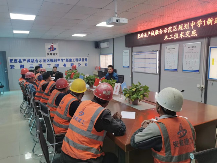 肥西產(chǎn)融安醫(yī)大新醫(yī)科中心規(guī)劃中學項目是肥西縣重點民生工程,工期緊、任務重,交叉作業(yè)頻繁,為提升施工作業(yè)人員能力素質(zhì),以項目為載體開辦“農(nóng)民工業(yè)余學?!蓖ㄟ^開展各式培訓交底工作,切實提高作業(yè)人員施工水平和施工質(zhì)量,確保項目保質(zhì)保量完成交付工作。同時,通過開辦農(nóng)民工業(yè)余學校,進一步拓展了項目“我為群眾辦實事”開展形式,推動各項實踐活動在項目上走深走實,將技能與知識切實的交到工友手上。