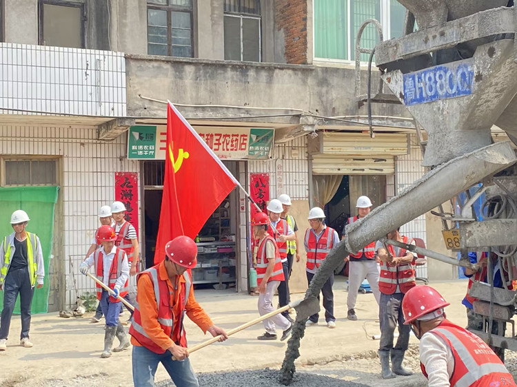 三十崗鄉(xiāng)三豐路集鎮(zhèn)段全長240m,原為4米寬村村通水泥路,因年久失修,路面有局部坑洼,給當?shù)氐拇迕裆畛鲂袔硪欢ǖ牟槐?,此條道路也是項目土方外運的必經之路。為感謝當?shù)卮迕駥椖拷ㄔO的支持,今年6月,八公司清瀾苑項目臨時黨支部主動承擔起該條道路的修復義務,并根據(jù)現(xiàn)場實際情況制定了針對性強、可實施性高的道路修復施工方案。在修復過程中,項目黨員干部和多名經驗豐富的一線職工頂住炎熱、突擊搶修,為道路品質提供了有力保障。村民們?yōu)楦兄x搶修組,紛紛拿來礦泉水、西瓜等。