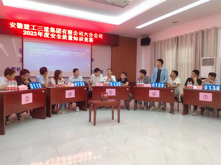 本次競(jìng)賽以項(xiàng)目為單位,六公司各在建項(xiàng)目選派一隊(duì)參賽,每隊(duì)為3人。競(jìng)賽分為必答題、看圖識(shí)隱患題、搶答題、風(fēng)險(xiǎn)題,活動(dòng)緊緊圍繞安全質(zhì)量管理規(guī)范、標(biāo)準(zhǔn),引導(dǎo)職工學(xué)知識(shí)、提技能,通過競(jìng)答形式,調(diào)動(dòng)了大家學(xué)習(xí)積極性、主動(dòng)性,進(jìn)一步凝聚職工思想、筑牢安全防線。經(jīng)過緊張激烈的四輪比賽,各小隊(duì)你追我趕,最終由廬江同大集鎮(zhèn)安置點(diǎn)項(xiàng)目B3地塊奪得冠軍。