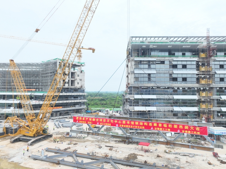 7月13日上午,肥西縣產(chǎn)城融合項目文化中心圖書館鋼結(jié)構(gòu)連廊首榀桁架吊裝成功,標(biāo)志項目建設(shè)取得階段性進(jìn)展。