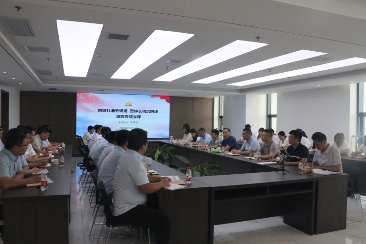 隨后,李躍進開展廉政專題黨課教育。本次黨課以“防微杜漸守規(guī)矩 警鐘長鳴筑防線”為主題,以反面典型案例為切入點,深入分析了當(dāng)前黨風(fēng)廉政建設(shè)和反腐敗斗爭的嚴峻形勢。他指出,一要心中裝著規(guī)矩,講紀律、守規(guī)矩、知敬畏、明底線,增強政治定力,自覺接受監(jiān)督,守住底線、不越紅線;二要嚴以律己,以身作則,保持頭腦清醒,做到廉潔自律,正確對待權(quán)力;三要堅守職責(zé)使命,強化擔(dān)當(dāng)意識,敢擔(dān)當(dāng)、能擔(dān)當(dāng)、善擔(dān)當(dāng),把履職盡責(zé)作為工作的立足點,把責(zé)任擔(dān)和當(dāng)作為落實工作的“試金石”。