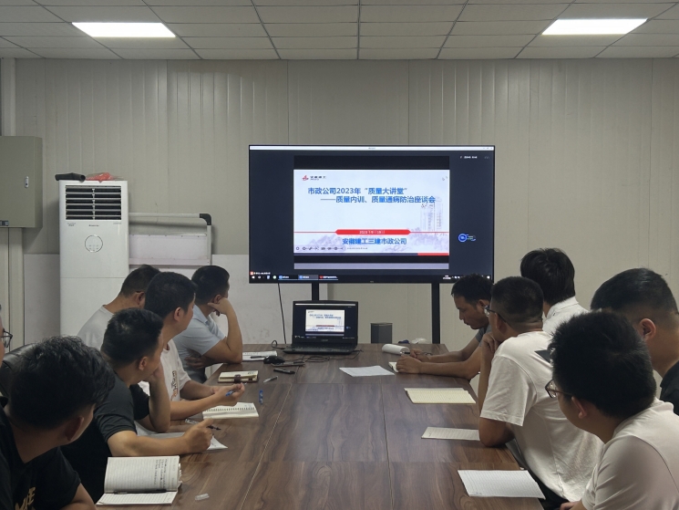 為貫徹落實(shí)安徽建工三建集團(tuán)有限公司《關(guān)于開(kāi)展2023年全國(guó)“質(zhì)量月”活動(dòng)通知》文件精神,9月19日,市政公司在蚌埠黃山大道項(xiàng)目部開(kāi)展“質(zhì)量大講堂”——質(zhì)量?jī)?nèi)訓(xùn)、質(zhì)量通病防治座談會(huì)和全員質(zhì)量管理標(biāo)準(zhǔn)化文件再學(xué)習(xí)活動(dòng)。其他在建項(xiàng)目視頻參會(huì),全體技術(shù)質(zhì)量管理人員參加。