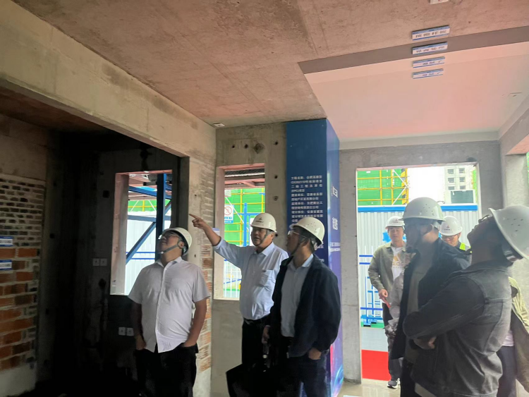 在時(shí)代星河二期項(xiàng)目部的觀摩現(xiàn)場(chǎng),參觀過(guò)程中,觀摩人員在項(xiàng)目負(fù)責(zé)人的帶領(lǐng)下來(lái)到PC構(gòu)件堆放區(qū)、質(zhì)量集中展示區(qū)、智慧工地展示區(qū)和五號(hào)樓觀摩區(qū),認(rèn)真了解了項(xiàng)目部在工程滲漏專項(xiàng)治理、樣板引路標(biāo)準(zhǔn)化、混凝土施工質(zhì)量管控標(biāo)準(zhǔn)化、裝配式施工工藝等方面的內(nèi)容。觀摩人員邊參觀邊思考,不時(shí)還互相討論如何將被觀摩項(xiàng)目在細(xì)部施工環(huán)節(jié)中好的做法和先進(jìn)經(jīng)驗(yàn)消化吸收,轉(zhuǎn)化成為自己項(xiàng)目上的“好點(diǎn)子”,同時(shí)還不忘拿出手機(jī),將每個(gè)亮點(diǎn)和細(xì)節(jié)進(jìn)行拍照。