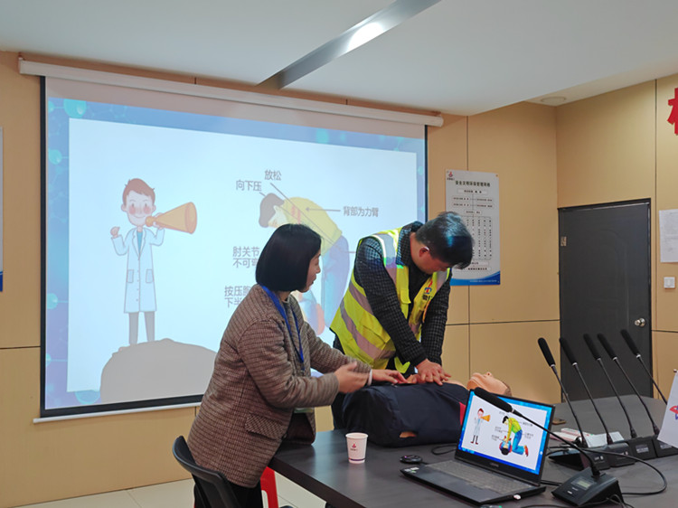 培訓(xùn)內(nèi)容主要包括常規(guī)急救技能(心肺復(fù)蘇術(shù))和常見疾病的預(yù)防及改善。課堂上,老師為大家科普了需要進(jìn)行心肺復(fù)蘇的情形、心肺復(fù)蘇具體操作步驟及心肺復(fù)蘇的有效判斷標(biāo)準(zhǔn),并現(xiàn)場(chǎng)邀請(qǐng)項(xiàng)目管理人員進(jìn)行了實(shí)操演練。