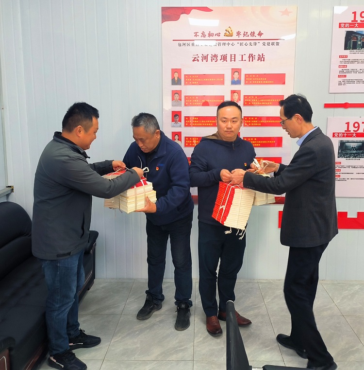 在黨員活動(dòng)室,闞言衛(wèi)代表包河區(qū)重點(diǎn)局向工作站捐贈(zèng)了一批黨建、業(yè)務(wù)和法律法規(guī)等方面書籍,并號(hào)召項(xiàng)目黨員、職工多讀書、勤學(xué)習(xí),不斷提升政治素養(yǎng)和崗位技能。