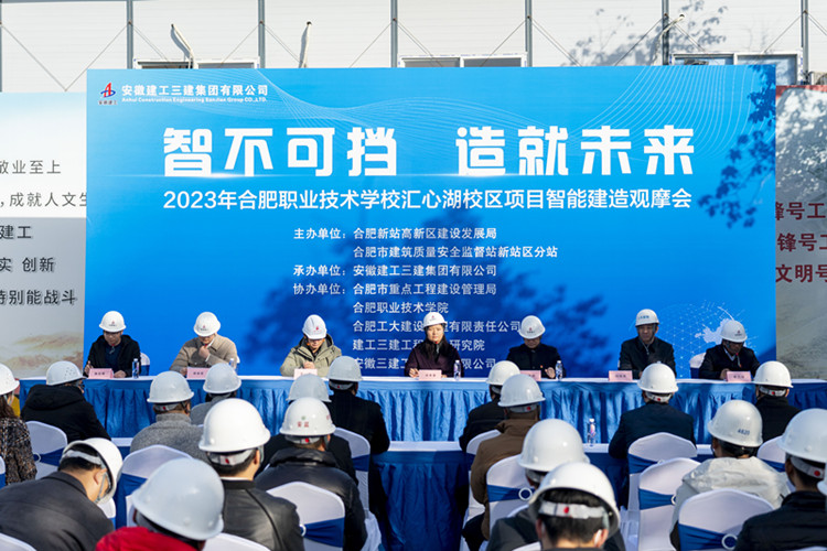 三建·智造③丨合肥新站高新區(qū)在建項(xiàng)目智能建造觀摩活動(dòng)在公司合肥職業(yè)技術(shù)學(xué)院項(xiàng)目舉辦