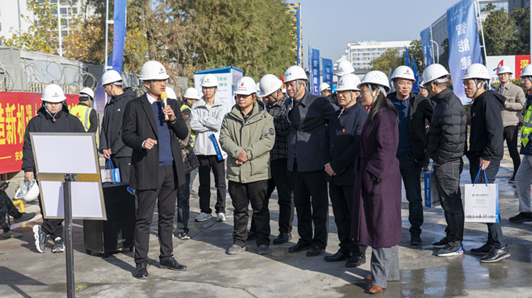 12月7日上午,由合肥新站高新區(qū)建設(shè)發(fā)展局、合肥市建筑質(zhì)量安全監(jiān)督站新站區(qū)分站主辦,安徽建工三建集團(tuán)有限公司承辦的“智不可擋 造就未來”智能建造觀摩活動(dòng)在合肥職業(yè)技術(shù)學(xué)院建設(shè)項(xiàng)目順利舉行,新站高新區(qū)建筑質(zhì)量安全監(jiān)管中心主任許冬至、新站高新區(qū)各施工單位相關(guān)負(fù)責(zé)人約50余人參加觀摩會(huì)。