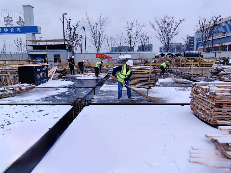 又看!在蜀山經(jīng)濟產(chǎn)業(yè)園安裝項目施工現(xiàn)場,雖然寒風凜冽、漫天飛雪,但項目依然保持火熱的建設狀態(tài)。為保障項目施工進度和現(xiàn)場施工安全,全體管理人員都參與到清掃施工板面的積雪當中。他們堅守崗位、默默奉獻,全力確保各項工程節(jié)點的順利完成。目前,蜀山經(jīng)濟產(chǎn)業(yè)園安裝項目地下室負二層已全面完工,一、二號樓負一層和三號樓一層預埋也已經(jīng)全部結(jié)束。