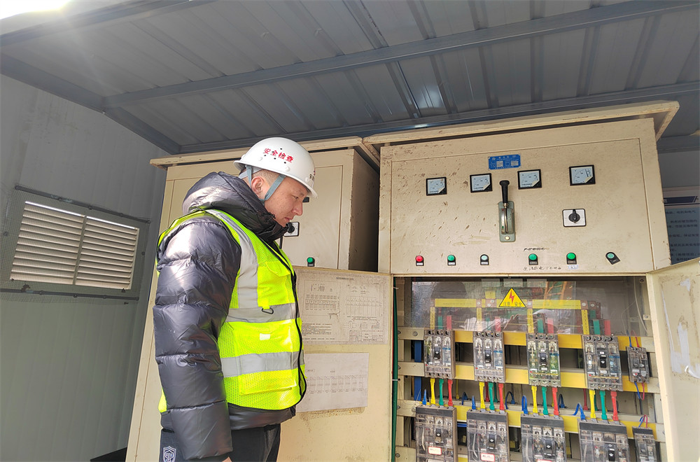 “工人兄弟還堅(jiān)守在項(xiàng)目,守護(hù)他們平安過(guò)年是我們新年愿望?!卑踩珕T李豐懷在巡視現(xiàn)場(chǎng)用電安全。