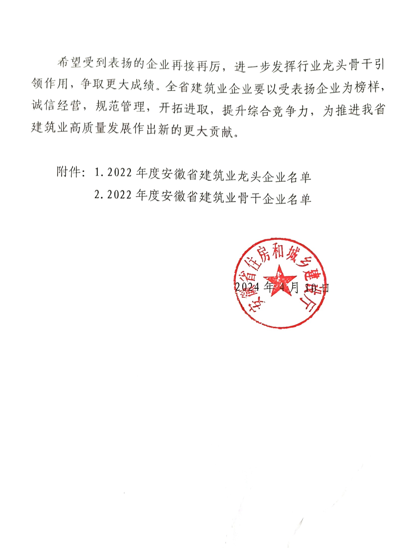 建工三建作為2022年度“安徽省建筑業(yè)龍頭企業(yè)”受到通報(bào)表揚(yáng)并連續(xù)三年榮膺“安徽省優(yōu)秀建筑業(yè)企業(yè)”殊榮。