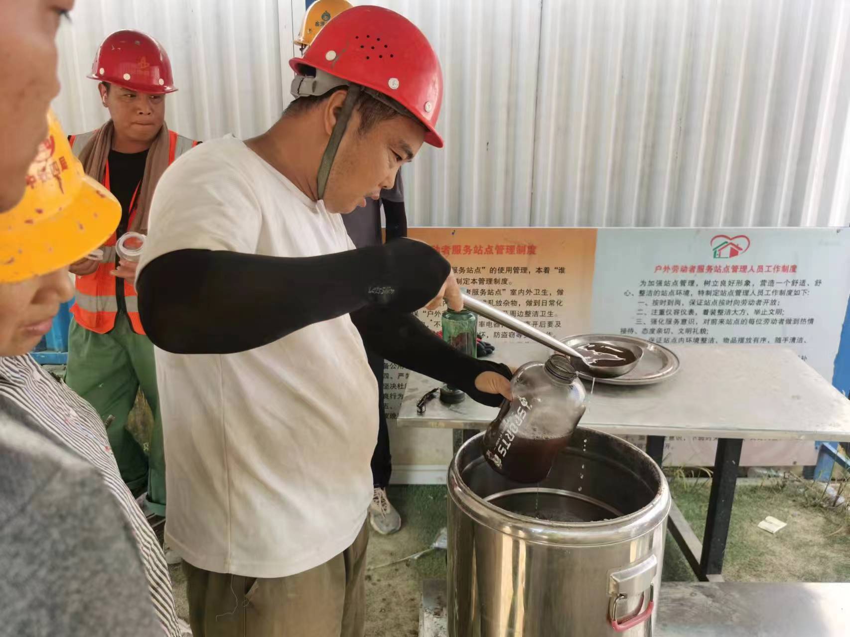 安淮污水處理廠項(xiàng)目為工人發(fā)放防暑降溫藥品