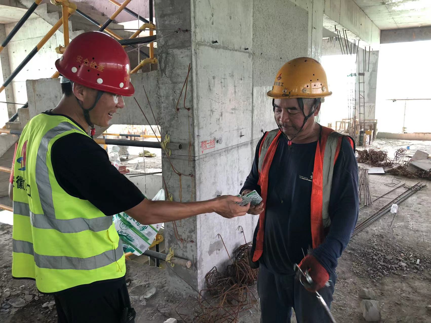 人才公寓項(xiàng)目為工人發(fā)放防暑降溫物資