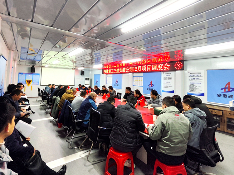 近日,安裝公司在臨湖智能制造產(chǎn)業(yè)園會議室召開十二月份項目調(diào)度會,分公司領(lǐng)導(dǎo)班子、科室負責(zé)人、項目經(jīng)理及業(yè)務(wù)骨干等40余人參加會議。