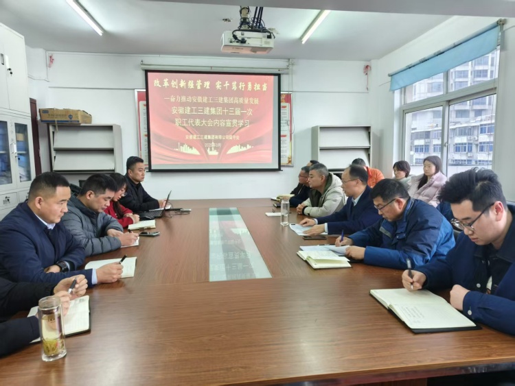 近日,安徽建工集團(tuán)控股有限公司三屆二次職工代表大會(huì)暨2025年工作會(huì)議和安徽建工三建集團(tuán)有限公司十三屆一次職代會(huì)暨2025年工作會(huì)議勝利召開。會(huì)后,建工三建所屬各單位迅速掀起學(xué)習(xí)宣貫熱潮,確保兩級(jí)職代會(huì)精神傳達(dá)到每一位職工,進(jìn)一步統(tǒng)一思想、凝心聚力,推動(dòng)公司高質(zhì)量發(fā)展,為集團(tuán)轉(zhuǎn)型發(fā)展、高質(zhì)量發(fā)展、大發(fā)展貢獻(xiàn)力量。