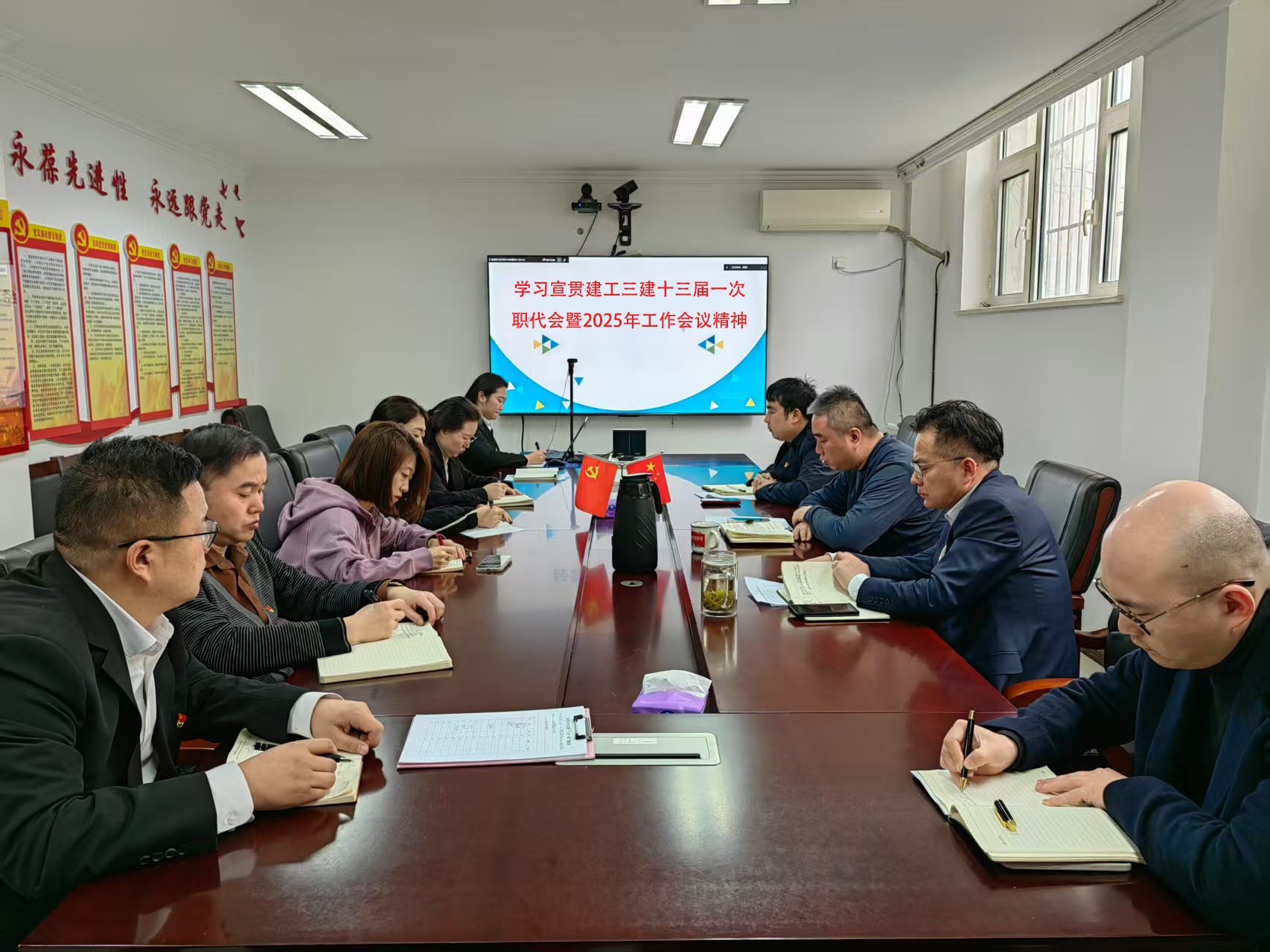 近日,安徽建工集團控股有限公司三屆二次職工代表大會暨2025年工作會議和安徽建工三建集團有限公司十三屆一次職代會暨2025年工作會議勝利召開。會后,建工三建所屬各單位迅速掀起學習宣貫熱潮,確保兩級職代會精神傳達到每一位職工,進一步統(tǒng)一思想、凝心聚力,推動公司高質量發(fā)展,為集團轉型發(fā)展、高質量發(fā)展、大發(fā)展貢獻力量。