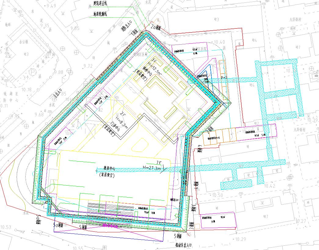 在項(xiàng)目場地東側(cè)支護(hù)樁施工過程中,施工人員發(fā)現(xiàn)疑似地下人防洞的跡象。建設(shè)單位立即組織勘察單位對紅線范圍內(nèi)進(jìn)行詳細(xì)勘察,最終確認(rèn)此處存在地下人防洞。該人防洞埋置最深達(dá)21米,孔洞高度最高為6.7米。經(jīng)與人防部門溝通了解到,人防洞大致位置已明確,且穿過項(xiàng)目紅線,大部分位于九華新村小區(qū)內(nèi)。為消除防空洞對天然基礎(chǔ)及支護(hù)樁可能產(chǎn)生的不利影響,對整個(gè)防空洞進(jìn)行加固處理勢在必行。