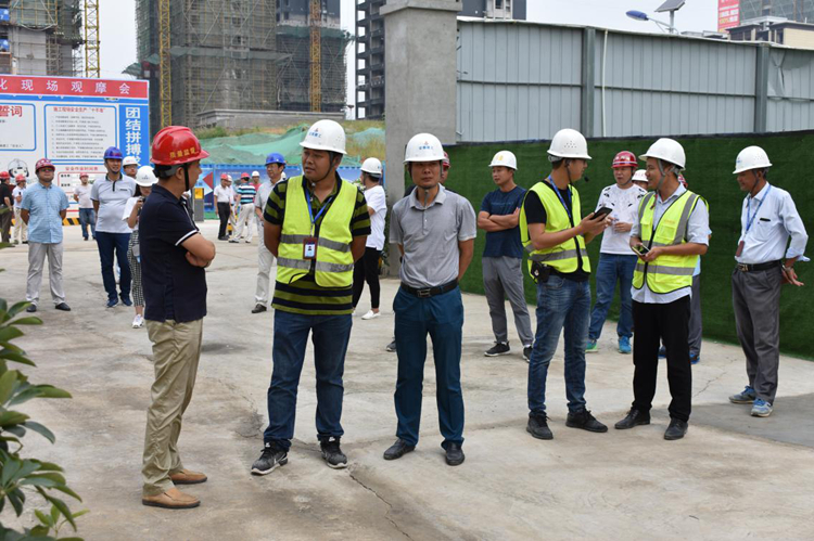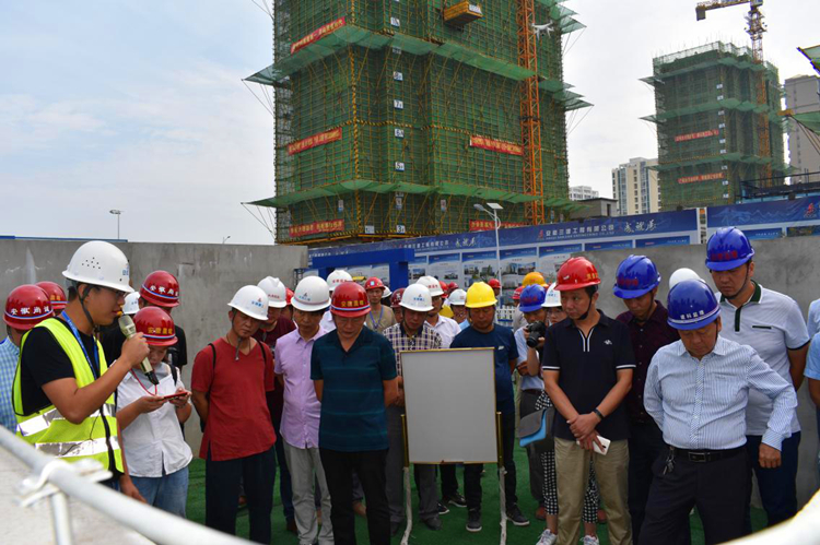 此次活動由淮南市住建委組織,通過對州來皖投·天下明珠項目現(xiàn)場施工工藝講解、質(zhì)量樣板展示、質(zhì)量樣板區(qū)展示、現(xiàn)場樓棟實體觀摩等形式,直觀展示了該項目在施工質(zhì)量關(guān)鍵部位、關(guān)鍵工序的做法和要求。項目部著重介紹了施工中鋁合金模板及全鋼型升降腳手架等技術(shù)的應(yīng)用方法及效果,得到同行觀摩人員的一致好評。