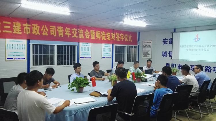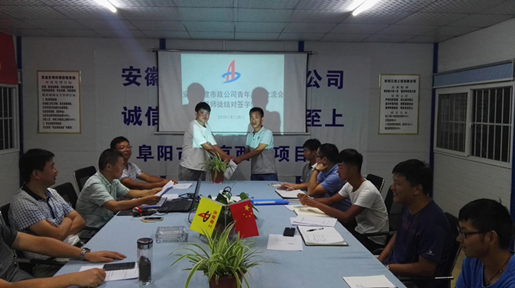 日前,市政公司在阜陽市北京西路工程項目部會議室,組織開展了青年交流會暨2018年度師徒結對簽字儀式。市政公司近三年以來進場的大學生、阜陽市北京西路工程項目全體管理人員及部分科室負責人和領導班子成員參加了活動。