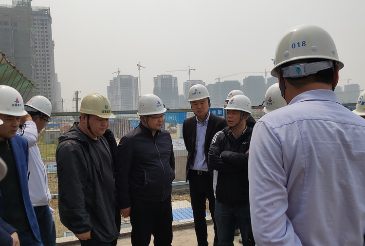 在施工現(xiàn)場(chǎng),孫俊中一行首先參觀了樣板展示區(qū),詳細(xì)聽取了講解人員對(duì)裝配式工程的質(zhì)量控制、安全管理、揚(yáng)塵治理、工藝難點(diǎn)等方面的介紹。會(huì)上,雙方就新形式下裝配式工程的發(fā)展方向、施工難點(diǎn)以及解決措施等進(jìn)行了交流探討。