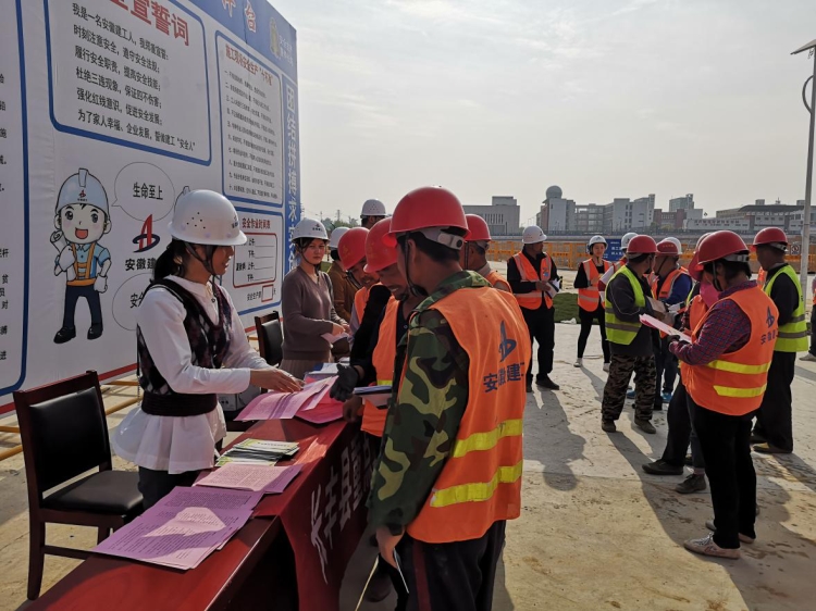 2019年4月15日下午,長(zhǎng)豐縣重點(diǎn)工程建設(shè)管理中心的工作人員來到十公司承建的長(zhǎng)豐縣北城醫(yī)院項(xiàng)目部施工現(xiàn)場(chǎng),與項(xiàng)目管理人員共同為項(xiàng)目一線農(nóng)名工兄弟開展“國(guó)家安全教育日”普及教育暨掃黑除惡宣講活動(dòng)。