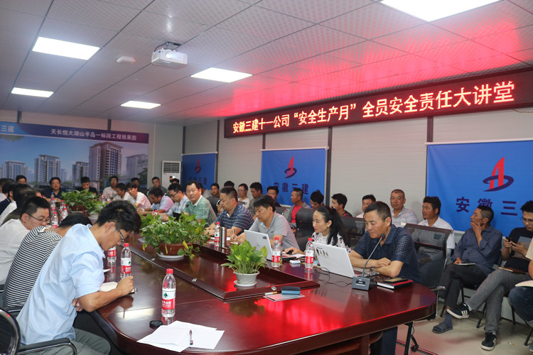 為積極響應(yīng)建工集團(tuán)、三建公司關(guān)于安全生產(chǎn)工作的號召,強(qiáng)化安全意識(shí),提升安全素質(zhì)。2019年6月16日晚7點(diǎn),十一公司組織領(lǐng)導(dǎo)班子成員、項(xiàng)目經(jīng)理、項(xiàng)目管理人員共計(jì)40余人在天長恒大項(xiàng)目會(huì)議室開展“安全責(zé)任大講堂”活動(dòng)。
