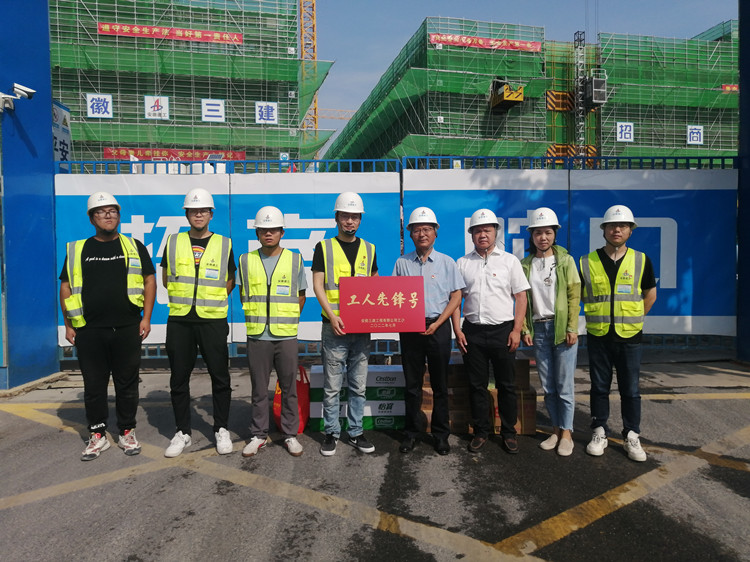 7月19日上午,公司副督察員李家保一行赴少荃體育中心項目部,為項目創(chuàng)建公司“工人先鋒號”進行驗評授牌并“送清涼”。