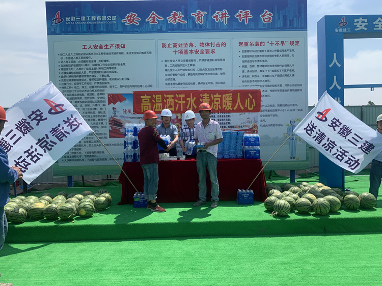 石業(yè)兵和徐國鋒邊發(fā)放物品,還邊叮囑四期項目經(jīng)理和基層管理人員,任何時候都要將安全放在首位,要采取有效的防暑降溫和安全生產(chǎn)保障措施,避免高溫時段疲勞作業(yè),防止農(nóng)民工中暑和其他各類生產(chǎn)安全事故的發(fā)生。