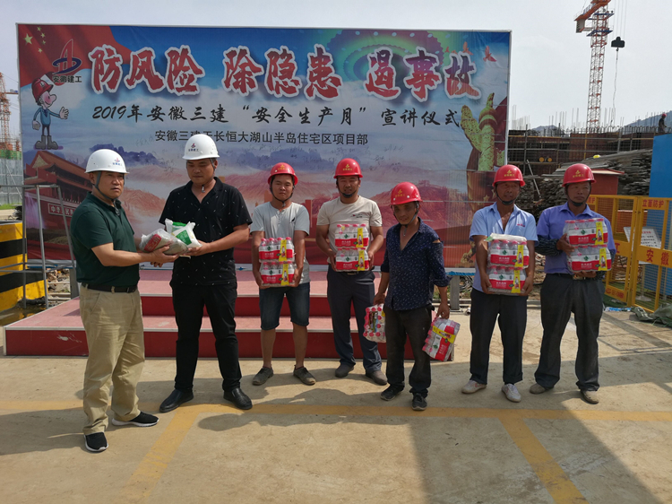7月18日,十二公司工會(huì)到滁州東菱項(xiàng)目、滁州和悅郡項(xiàng)目、滁州三悅瀾山項(xiàng)目部開(kāi)展“送清涼”活動(dòng),為項(xiàng)目一線職工送去了防暑降溫的綠豆、白糖、十滴水等清涼食品和防暑藥品。 隨后,分公司工會(huì)主席丁玉新、副經(jīng)理王秋剛一行深入項(xiàng)目施工現(xiàn)場(chǎng),詳細(xì)詢問(wèn)了項(xiàng)目高溫作業(yè)中的安全防護(hù)措施情況,重點(diǎn)檢查了項(xiàng)目職工的工作和生活環(huán)境,叮囑項(xiàng)目經(jīng)理要以人為本,避開(kāi)午間高溫時(shí)段,在搶工期、抓質(zhì)量中確保安全生產(chǎn)和文明施工。同時(shí)更要合理安排好工作、飲食和休息時(shí)間,保證足夠睡眠,切實(shí)做好高溫期間的防暑降溫工作,確保項(xiàng)目一線職工們度過(guò)一個(gè)安全、衛(wèi)生、清涼的夏季。