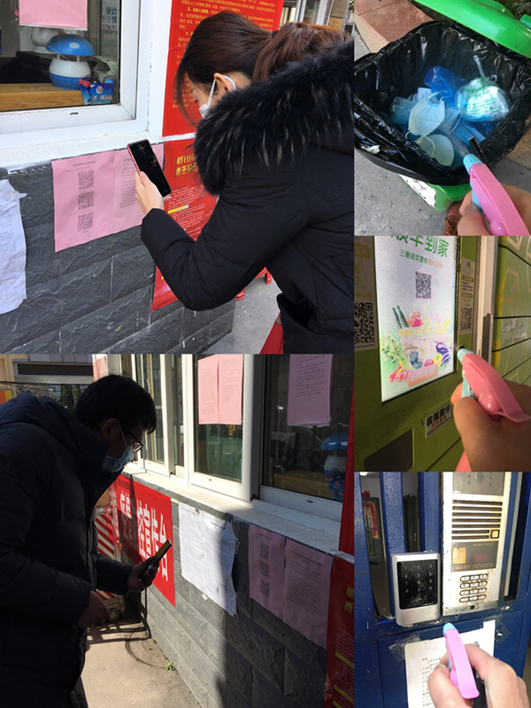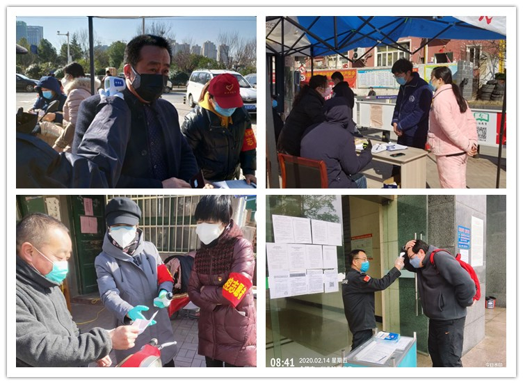 圖為物業(yè)公司工作人員在駿豪華庭、麗陽雅居等小區(qū)開展測(cè)量體溫、進(jìn)出登記等工作