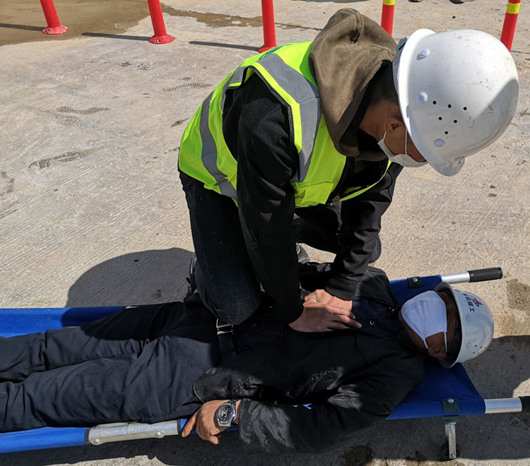 演習(xí)中,突發(fā)火災(zāi)報警聲響起后,滅火組、疏散組、警戒組、搶救組迅速到位,滅火組立即拎起滅火器沖向著火點(diǎn)進(jìn)行滅火;疏散組迅速趕往施工現(xiàn)場、樓梯間及安全出口處,通過口令加手勢,指揮現(xiàn)場施工人員從指定路線有秩序疏散到安全地帶,并做好人員的清點(diǎn)統(tǒng)計;警戒組在著火點(diǎn)做人群隔離,并對通道進(jìn)行清理,以便消防車進(jìn)入;搶救組立即用擔(dān)架就將受傷人員抬離安全地帶,并實(shí)施搶救措施。演練現(xiàn)場大家按照項目部編制的《火災(zāi)應(yīng)急救援預(yù)案》,緊張、迅速、有序?qū)馂?zāi)事故警報做出反應(yīng),順利完成演練工作。