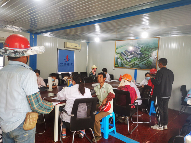 4月21日至5月22日,九公司淮南、亳州、滁州、河南鄭州的七個外地項目陸續(xù)組織開展農民工進行體檢工作。為了不影響施工進度,九公司要求各個項目部提前謀劃、緊密部署,精心組織,把醫(yī)院醫(yī)護人員請到項目一線,把體檢設備搬進工地會議室,建立了臨時體檢中心。體檢內容包括了血壓測量、視力檢查、心臟聽診、五官檢查等項目。通過本次體檢,讓廣大農民工朋友們對自身的健康狀況有了較為全面的了解。