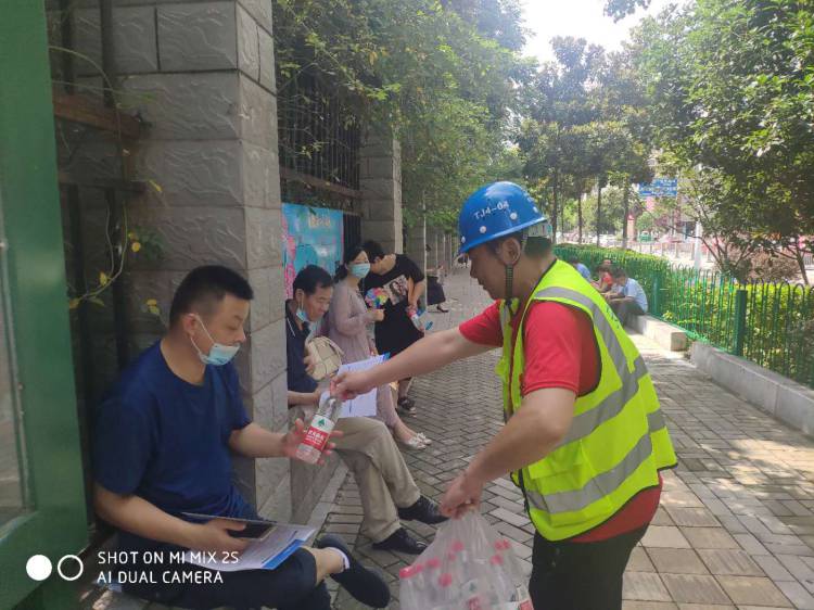 此外,我項(xiàng)目還組織人員給考點(diǎn)附近執(zhí)勤的交警、城管、供電保障、市政維護(hù)人員送去礦泉水解暑降溫。同時(shí),也為考場外忘帶水的考生家長們提供礦泉水。