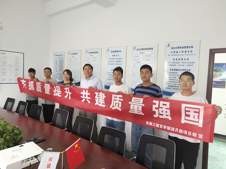 為貫徹落實《中共中央國務(wù)院關(guān)于開展質(zhì)量提升行動的指導(dǎo)意見》及公司“質(zhì)量月”相關(guān)文件精神,提升質(zhì)量管理水平,2020年9月17日,水利交通公司官亭鎮(zhèn)清月路項目部組織召開2020年“質(zhì)量月”承諾會。全體項目部職工為高質(zhì)量完成項目建設(shè)作承諾、簽姓名。