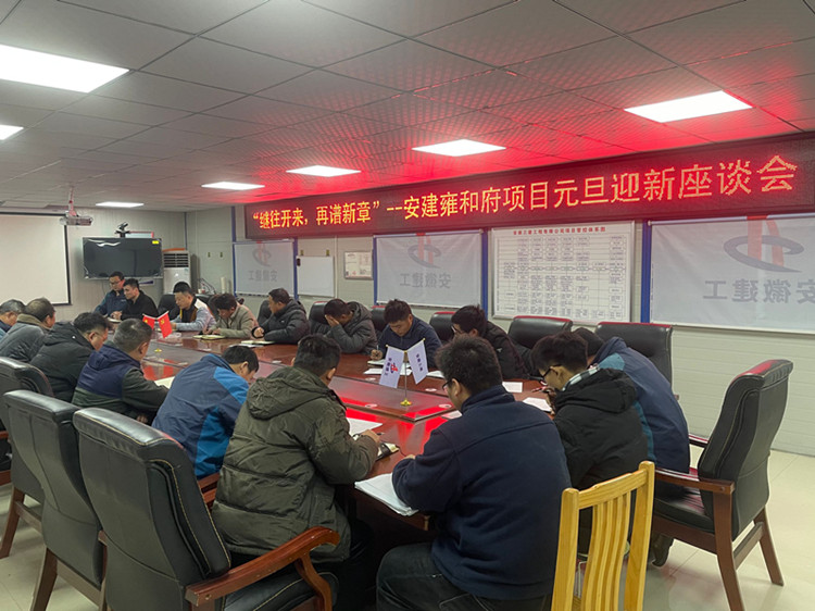 2021年1月1日,四公司阜南安建雍和府項目部組織召開了辭舊迎新座談會,項目部全體職工歡聚一堂,開心交流,共話工作和生活。
