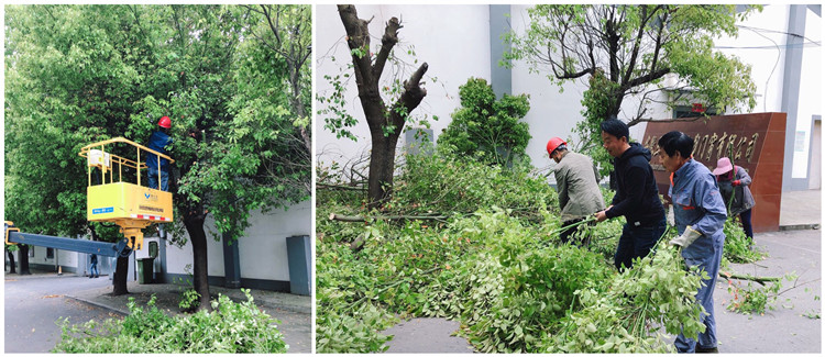 在修剪的過(guò)程中,由于樹(shù)木參差不齊,有的已經(jīng)觸碰到電線(xiàn),非常危險(xiǎn),處理起來(lái)比較困難,設(shè)備租賃公司黨支部為了解決這一難題,采取應(yīng)對(duì)措施----租借升降車(chē),工作人員利用專(zhuān)業(yè)油鋸在保證自身安全的情況下,對(duì)樹(shù)木進(jìn)行修剪,遇到較高、粗壯的樹(shù)枝也是一遍又一遍耐心的鋸割,大伙兒有的鋸樹(shù)枝、有的搬木頭、有的清掃垃圾……分工合作,相互配合,干的熱火朝天、忙的不亦樂(lè)乎,一個(gè)個(gè)汗流浹背。最后將修剪下來(lái)的大樹(shù)枝被及時(shí)清運(yùn),保證新基地行人車(chē)輛的安全通行。經(jīng)過(guò)一天緊張有序的工作,整個(gè)新基地的環(huán)境煥然一新。