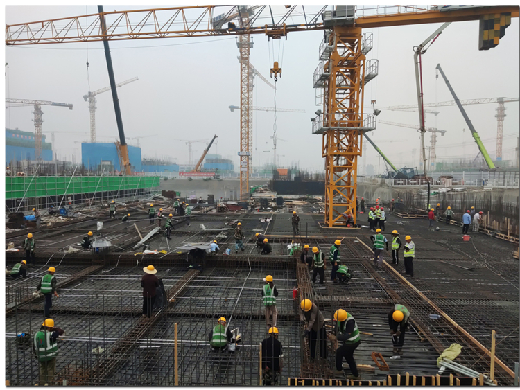 正值大暑,烈日炎炎,但項(xiàng)目管理人員和工人們戰(zhàn)高溫、斗酷暑,打敗一切不利于因素,倒排工期,加班加點(diǎn),采取“5+2”、“白+黑”24小時(shí)倒班作業(yè)的搶工模式,有力確保不間斷作業(yè)。各工區(qū)開足馬力趕工期、搶進(jìn)度,大家鼓足干勁、輪班作業(yè)、晝夜兼程,所有人都在有條不紊地忙碌著,放線、看儀器、指揮塔吊、綁扎鋼筋、支撐模板、澆筑混凝土,全力加快施工生產(chǎn)進(jìn)程。全體管理人員帶領(lǐng)現(xiàn)場(chǎng)工人頭頂烈日奮戰(zhàn)在施工一線,每一寸裸露在太陽下的皮膚都被曬的通紅,汗水從每一個(gè)毛孔滲透出來,模糊了雙眼,打濕了衣襟,一顆顆晶瑩飽滿的汗水順著衣角滴到滾燙的地面;但這都擋不住建設(shè)者們的熱情,阻不了勞動(dòng)者們的腳步,他們白天與驕陽為伍,夜晚與星辰相伴,為確保實(shí)現(xiàn)八月底主體結(jié)構(gòu)全面封頂?shù)哪繕?biāo),吹響“沖鋒集結(jié)號(hào)”,大干快上。