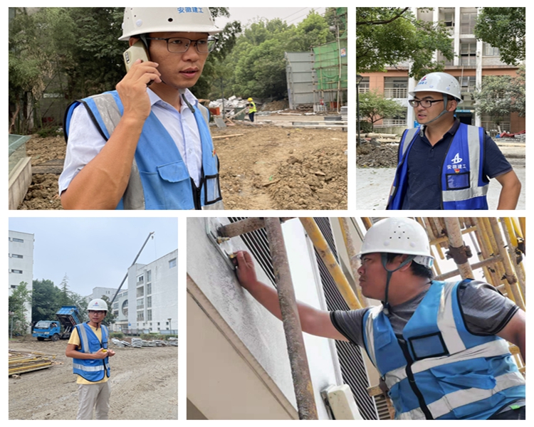 項(xiàng)目建設(shè)期間涌現(xiàn)出了一大批堅(jiān)定信念、盡職盡責(zé)、敬業(yè)奉獻(xiàn)的生動(dòng)典型。項(xiàng)目經(jīng)理李國(guó),臨危受命,沉著應(yīng)對(duì),堅(jiān)定信念,帶領(lǐng)團(tuán)隊(duì)克服工期緊、困難多、要求高等重重險(xiǎn)阻壓力,把控全局的同時(shí)著眼細(xì)節(jié),全力推進(jìn)項(xiàng)目搶工建設(shè),在一中項(xiàng)目搶工建設(shè)過(guò)程中發(fā)揮主導(dǎo)核心作用。銀城旭輝樾溪臺(tái)項(xiàng)目經(jīng)理張健,兼顧自身項(xiàng)目收尾工作的同時(shí),樹(shù)立大局意識(shí),迅速轉(zhuǎn)變身份,擔(dān)任一中項(xiàng)目實(shí)驗(yàn)樓、行政樓及體育館改造工程區(qū)域負(fù)責(zé)。黃山恒大美麗之冠項(xiàng)目經(jīng)理年福永,服從調(diào)度聽(tīng)指揮,緊盯恒大項(xiàng)目決算對(duì)賬工作的同時(shí),在一中項(xiàng)目擔(dān)任生活區(qū)及教學(xué)區(qū)室外道排、綠化及廣場(chǎng)、雨污水改造工程區(qū)域負(fù)責(zé),喊得嗓子都嘶啞了,揣著藥就著礦泉水繼續(xù)堅(jiān)守崗位。二公司安全科長(zhǎng)張立榮,長(zhǎng)期蹲點(diǎn)一中項(xiàng)目,干起了項(xiàng)目安全員,“安全為天,項(xiàng)目干的再好,出了安全事故,一切白搭,一中正值搶工快上,現(xiàn)場(chǎng)節(jié)奏快,也正是班組工人最麻痹、最困乏、最暴躁、最容易違規(guī)操作的時(shí)候,一不留意就會(huì)存在安全隱患”。他每天馬不停蹄地穿梭在現(xiàn)場(chǎng)進(jìn)行安全巡檢,每個(gè)犄角旮旯都不發(fā)過(guò),為項(xiàng)目搶工建設(shè)把好了安全第一關(guān)。和他們一樣盡職盡責(zé)保障項(xiàng)目建設(shè)的還有二公司技術(shù)質(zhì)量科長(zhǎng)齊蔚、項(xiàng)目施工員唐龍泉、任安暉…… ,在項(xiàng)目上,晚上加班到11點(diǎn)多、每天步走3.5萬(wàn)步、日夜奮戰(zhàn)、曬傷依舊堅(jiān)守崗位、放棄與家人團(tuán)聚、犧牲休息時(shí)間都是常態(tài)。