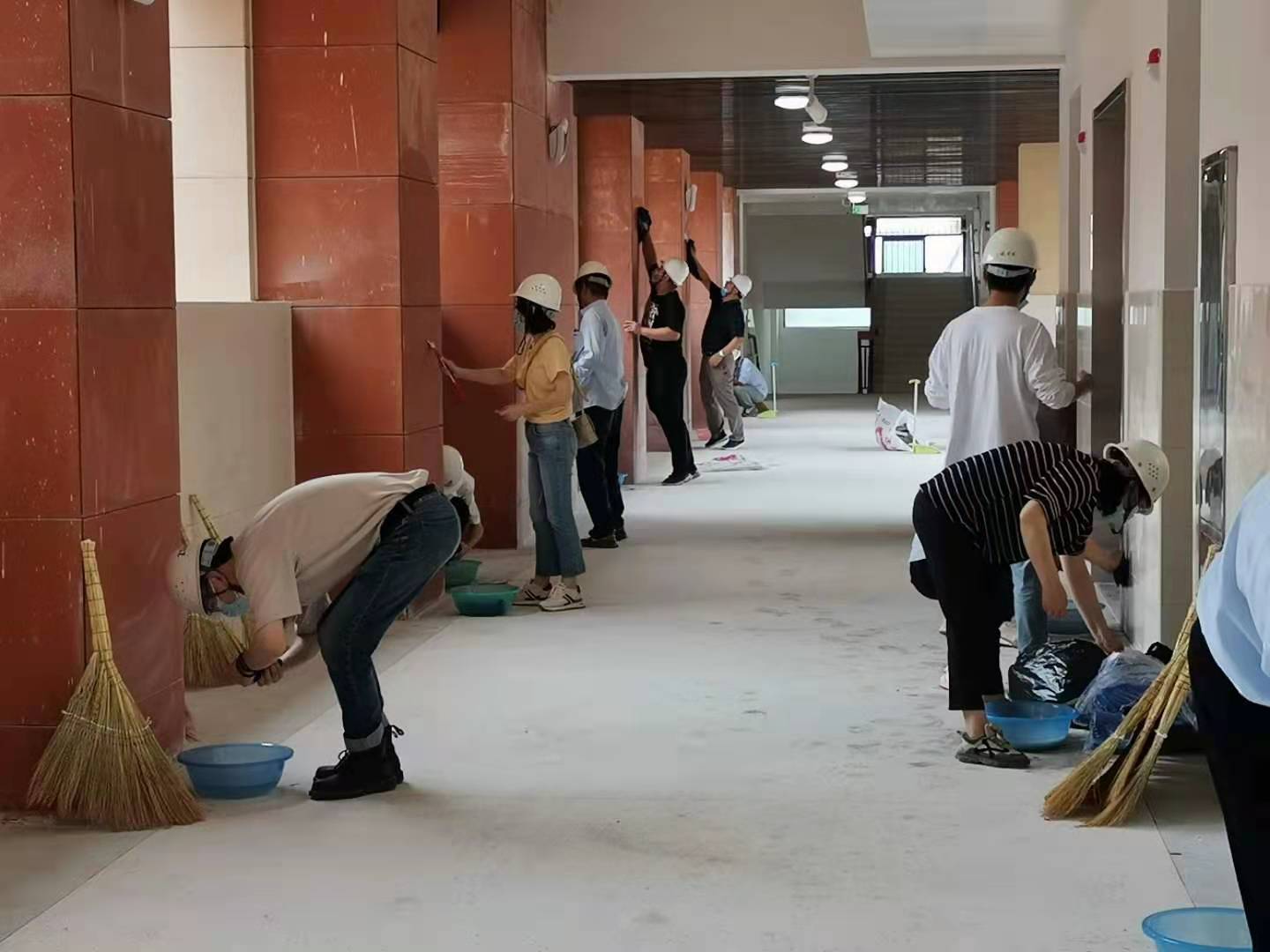 活動(dòng)中,大家有的清掃樓道,有的撿拾雜物,有的擦洗墻面,有的鏟除膠漬,現(xiàn)場(chǎng)一片忙碌景象。經(jīng)過大家的辛勤勞動(dòng),樓道、教室、場(chǎng)館被打掃得干凈整潔。雖然滿身灰塵,衣服濕透,但大家都很有成就感。
