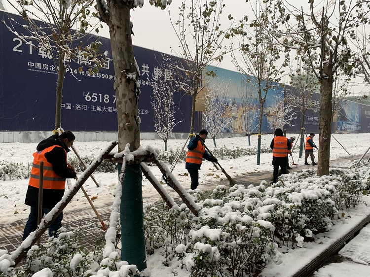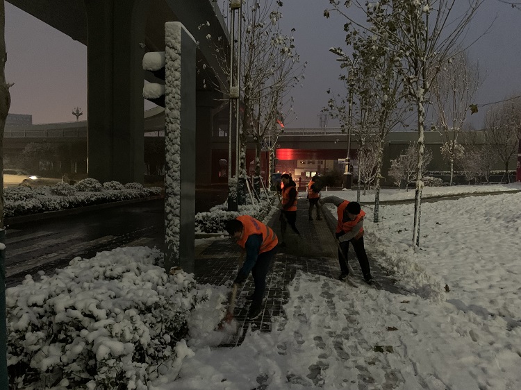 清掃積雪過程中,大家紛紛拿著鐵鍬、掃帚等除雪工具,分工合作、配合默契、干勁十足,積極投入冰雪清掃行動中,對責(zé)任路段的積雪進行了全面清理。嚴(yán)寒抵擋不住項目管理人員的熱情,他們鏟的鏟、掃的掃,忙碌的身影展現(xiàn)出建工人良好的精神面貌,彰顯了國企的責(zé)任與擔(dān)當(dāng)。