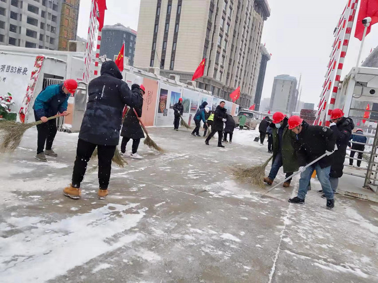 瑞雪兆豐年。2月13日,雄安新區(qū)突降大雪,積雪為雄安容西項(xiàng)目部帶來銀裝素裹的美景,同時(shí)也給項(xiàng)目建設(shè)帶來了諸多不便。為確保項(xiàng)目趕工達(dá)產(chǎn),堅(jiān)守崗位的建工人無心賞雪,全體員工在冰天雪地里浴“雪”奮戰(zhàn),頂風(fēng)雪、冒嚴(yán)寒、戰(zhàn)低溫,用不平凡的堅(jiān)守全力保障項(xiàng)目生產(chǎn)安全有序運(yùn)行。
