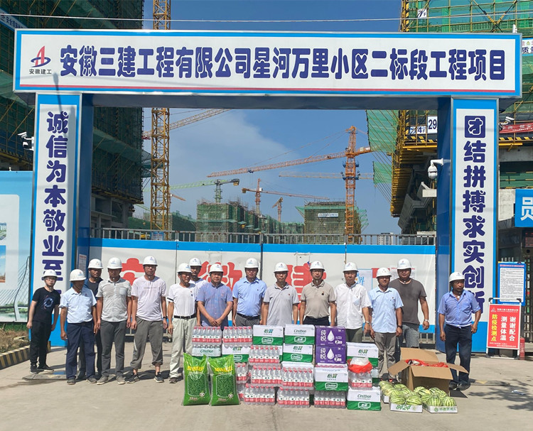 炎炎夏日,揮汗如雨。為保障項(xiàng)目一線員工的身體健康,確保全體員工全身心投入到安全生產(chǎn)工作中,7月13日上午,四公司領(lǐng)導(dǎo)班子及質(zhì)量、安全科科長(zhǎng)到蕪湖星河萬(wàn)里項(xiàng)目開展了“送清涼”慰問(wèn)活動(dòng)。