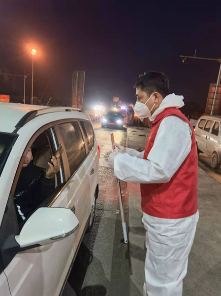 “您好,請(qǐng)出示您的健康碼與行程碼。”3月30日8時(shí),肥西縣206國道花崗收費(fèi)站入口處出現(xiàn)一批疫情防控志愿者們,他們是安徽三建產(chǎn)城融合示范區(qū)片區(qū)開發(fā)項(xiàng)目的黨員和入黨積極分子,站在城市的入口處爭當(dāng)城市的“守護(hù)者”。
